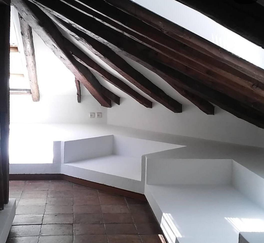 Instalación de cocina integrada a salón-comedor en buhardilla. Madrid Centro.